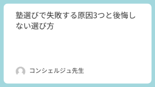 塾の選び方 塾選びで失敗する原因3つと後悔しない選び方 「塾に入れたのに成績が上がらない」と悩んでいませんか?元塾講師・家庭教師が100名以上の指導経験から、塾選びで失敗する3つの原因と後悔しない正しい選び方を徹底解説します。 2026.04.07 塾の選び方