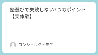 塾の選び方 塾選びで失敗しない7つのポイント【実体験】 塾選びで失敗してしまう人の共通点とは?元塾講師が100名以上を指導した実体験をもとに、後悔しない塾の選び方を7つのポイントで解説します。 2026.04.08 塾の選び方